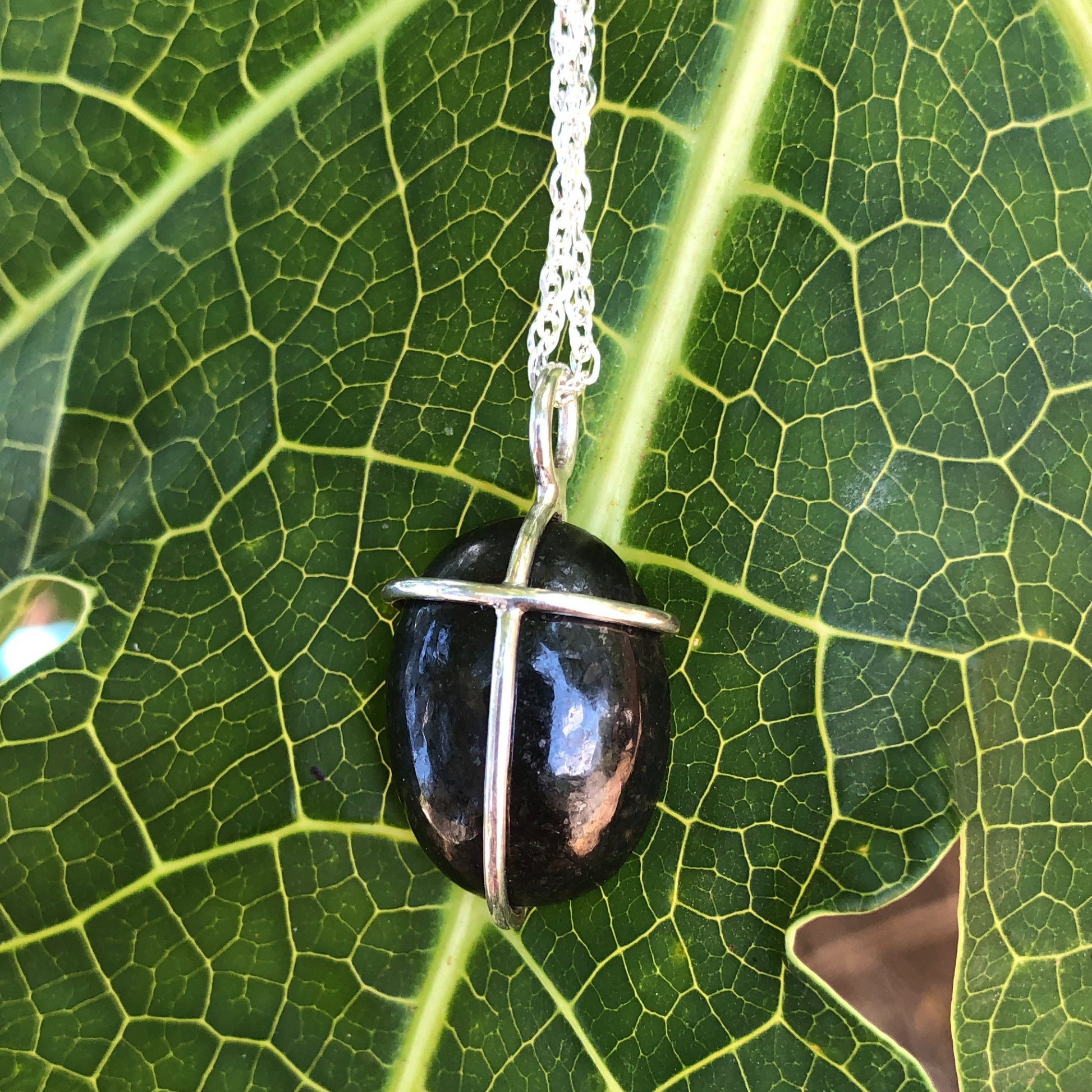The cross is hand-made from silver and wrapped around a piece of Zimbabwean granite that we have made into a granite cabochon.